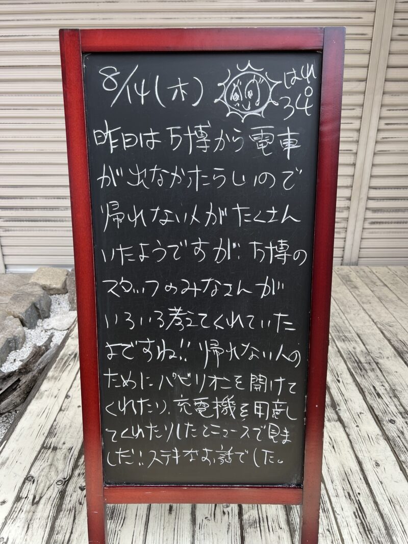 昨日は万博から電車が出なかったので、帰れない人がたくさんいたようです!