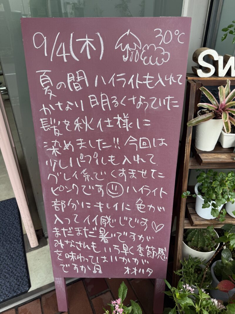 夏の間ハイライトも入れてかなり明るくなっていた髪を秋仕様に染めました!!