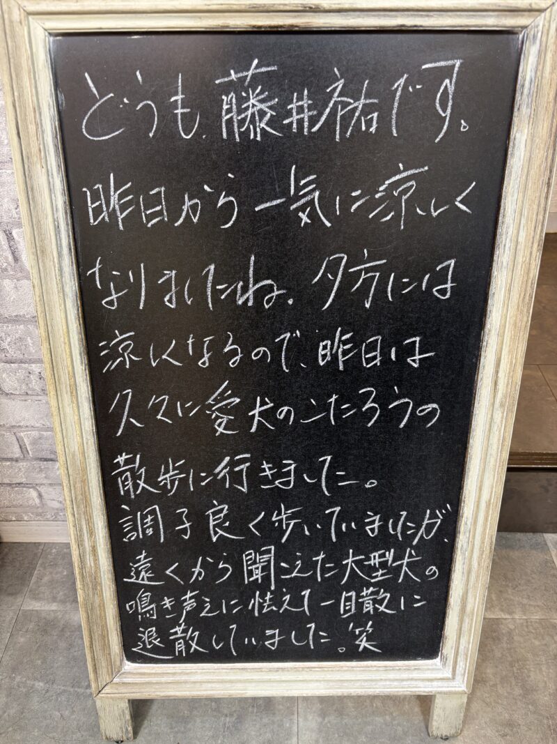 昨日から一気に涼しくなりましたね。夕方には涼しくなるので昨日は久々に愛犬のこたろうの散歩に行きました。