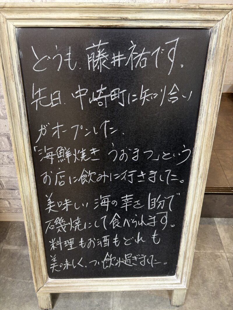 先日、中崎町に知り合いがオープンした「海鮮焼き  うおまつ」というお店に飲みに行きました。