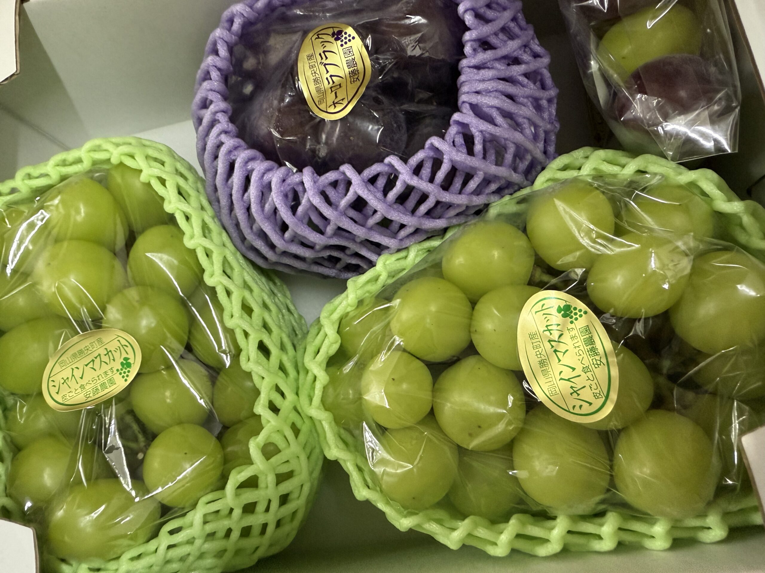 私はピオーネ好きですが、今年はオーロラブラックがおススメということでシャインマスカットと3種類楽しみました😊