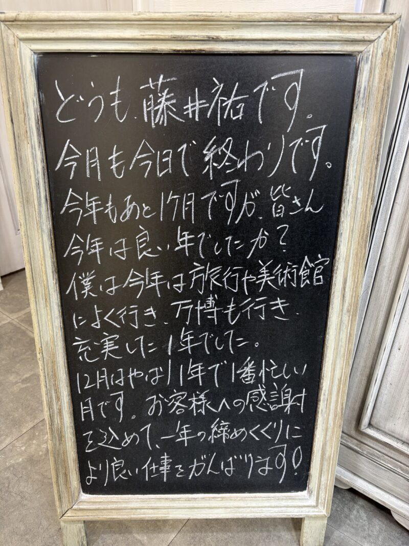 12月はやはり一年で一番忙しい月です。お客様への感謝を込めて、一年の締めくくりにより良い仕事をがんばります!