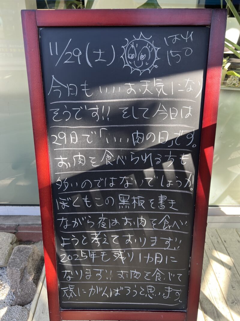 僕もこの黒板を書きながら、夜はお肉を食べようと考えおります!