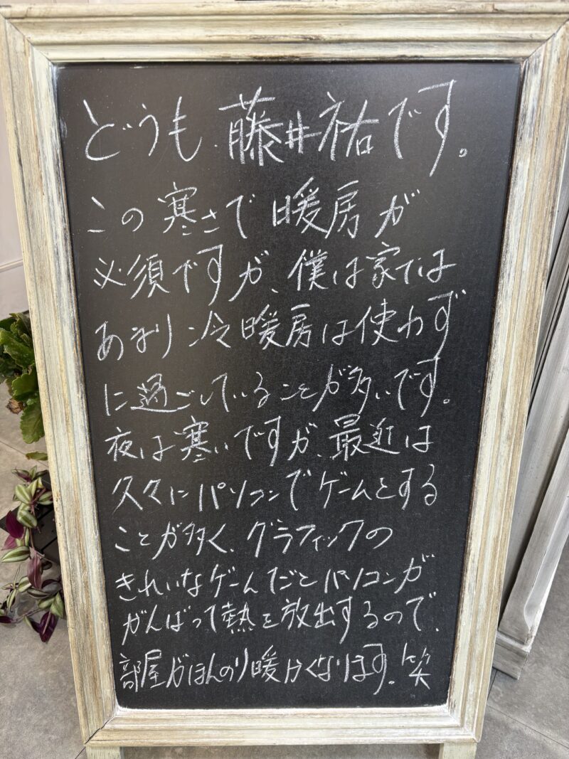 夜は寒いですが最近は久々にパソコンでゲームをすることが多く、グラフィックの綺麗なゲームだとパソコンが頑張って熱を放出するので、部屋がほんのり暖かくなります。笑
