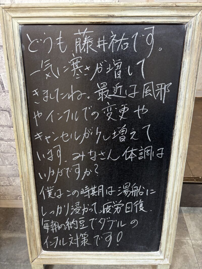 風邪やインフルエンザでの変更やキャンセルがちらほら増えてきています。みなさん体調はどうですか?