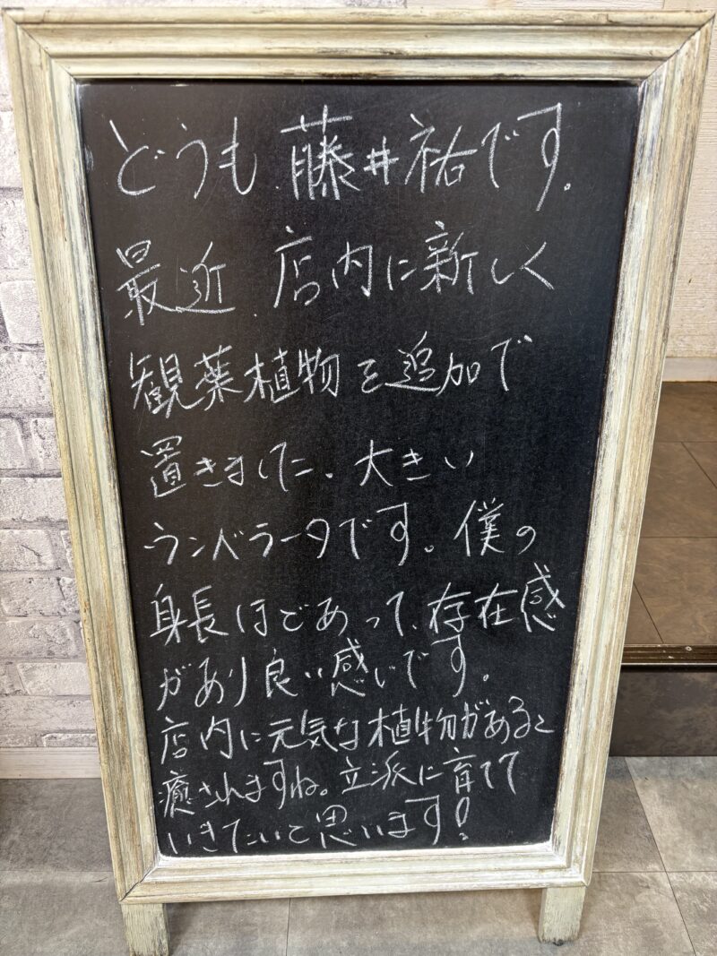 僕の身長ほどあって、存在感があり良い感じです。店内に元気な植物があると癒されますね。立派に育てたいと思います!