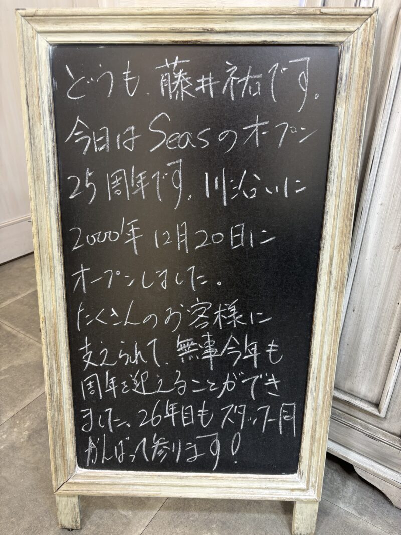 今日はSea’sのオープン25周年です。川沿いに2000年12月20日にオープンしました。