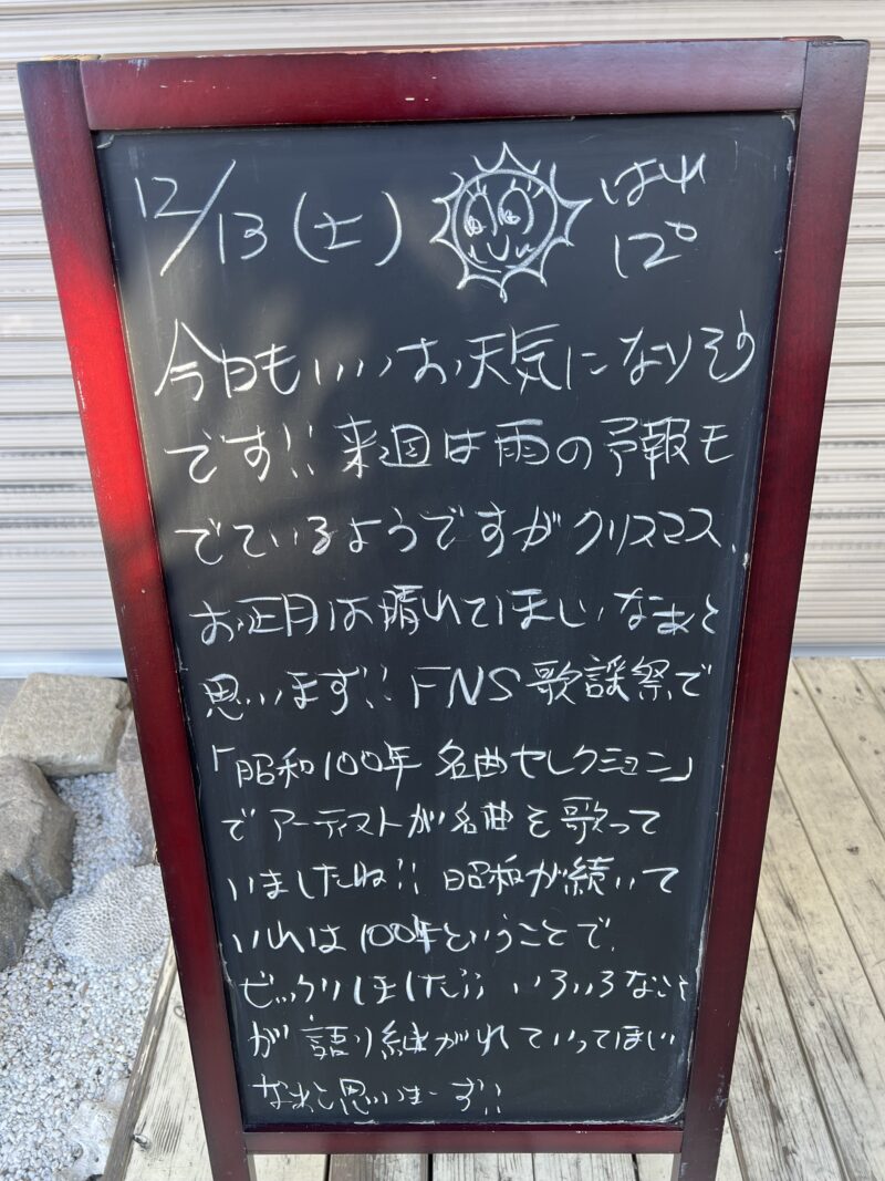 来週は雨の予報も出ていますが、クリスマスやお正月が晴れてほしいなぁと思いまーす!