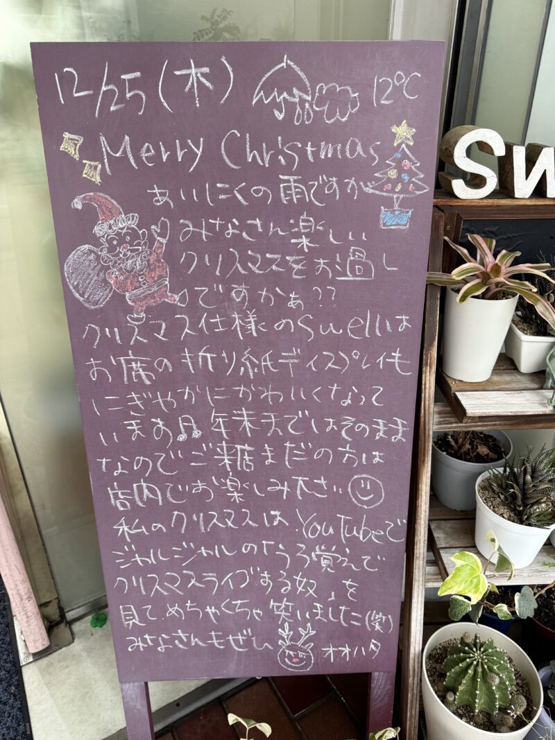 クリスマス仕様のSwellはお席の折り紙ディスプレイもにぎやかにかわいくなっています😊