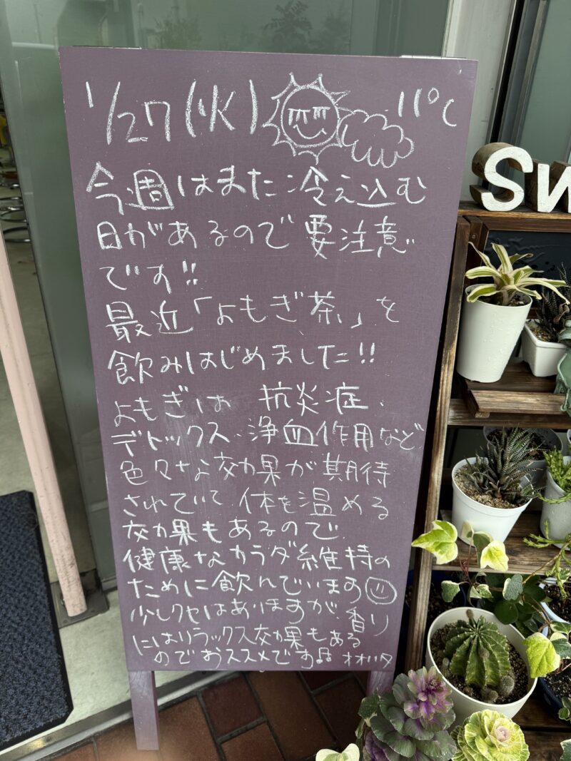 よもぎ茶 今週はまた冷え込む日があるので要注意です!!