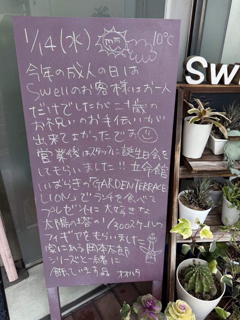 成人式&誕生日会 今年の成人の日は、Swellのお客様はお一人だけでしたが、二十歳のお祝いのお手伝いを出来てよかったです😊