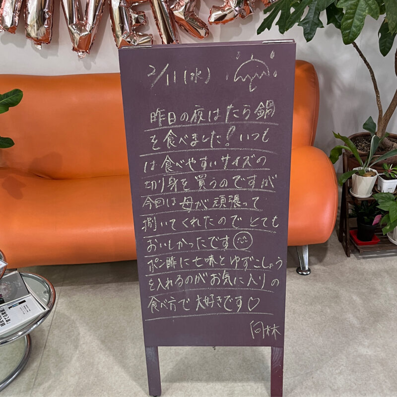 昨日の夜はたら鍋を食べました!いつもは食べやすいサイズの切り身を買うのですが今回は母が頑張って捌いてくれたのでとても美味しかったです🥰ポン酢に七味と柚子胡椒を入れるのがお気に入りの食べ方で大好きです❤️