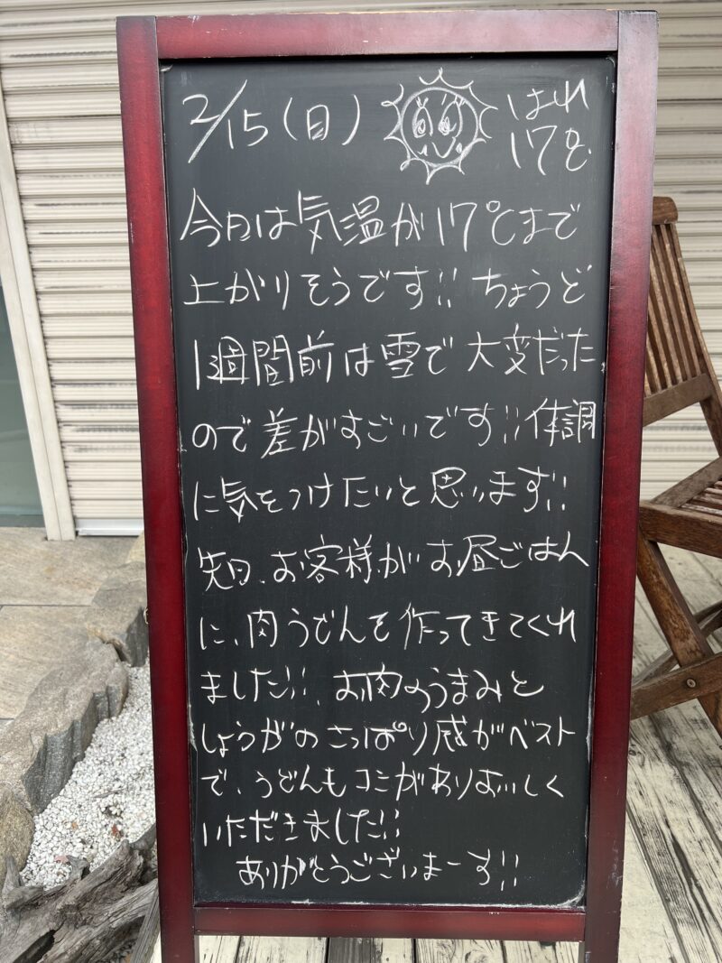 肉うどん! 今日は気温が17℃まで上がりそうです!!
