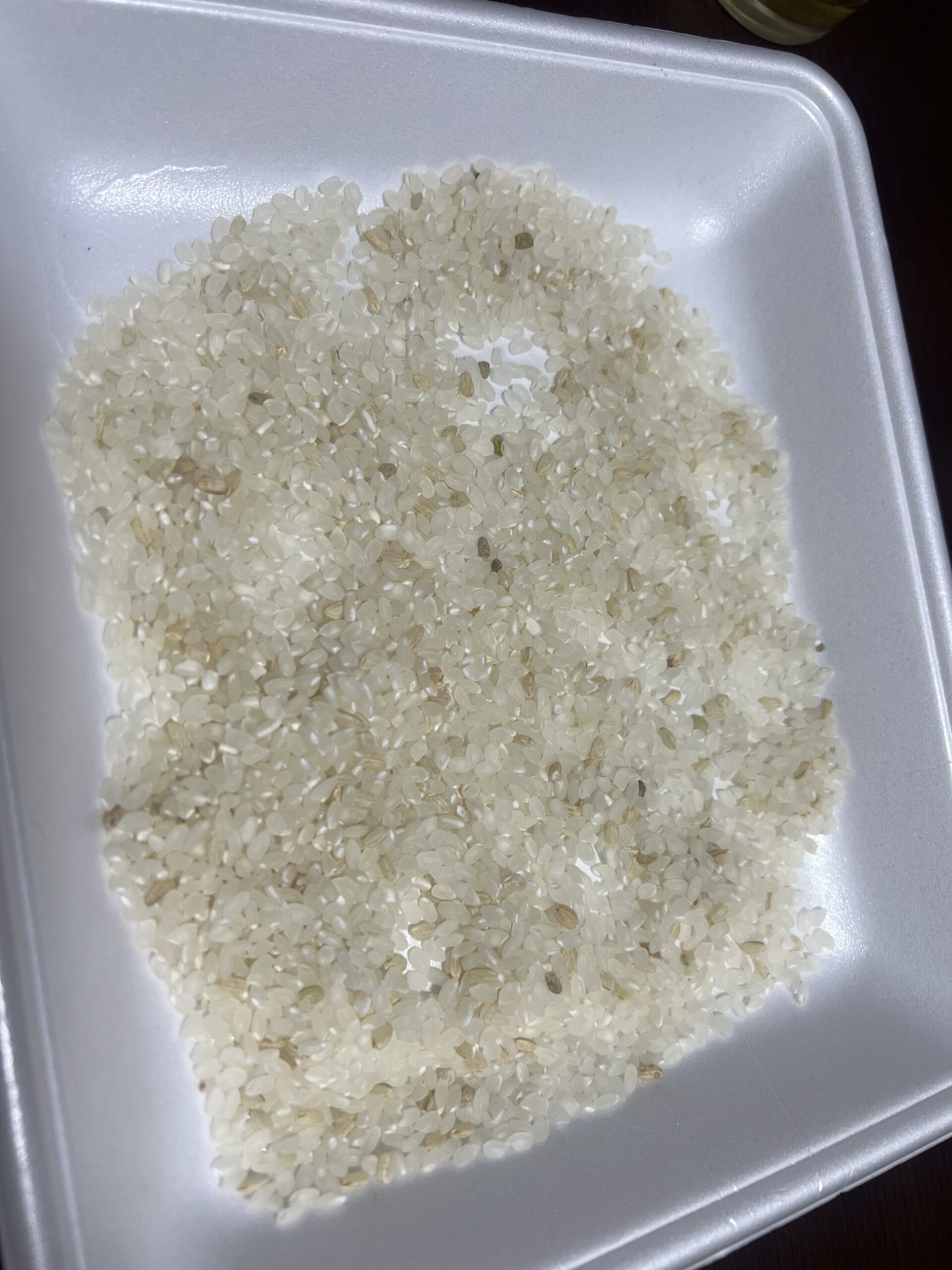家で作っている米を精米する時にうまくできなくて、玄米が混ざっていたので、手作業でとりわけました!