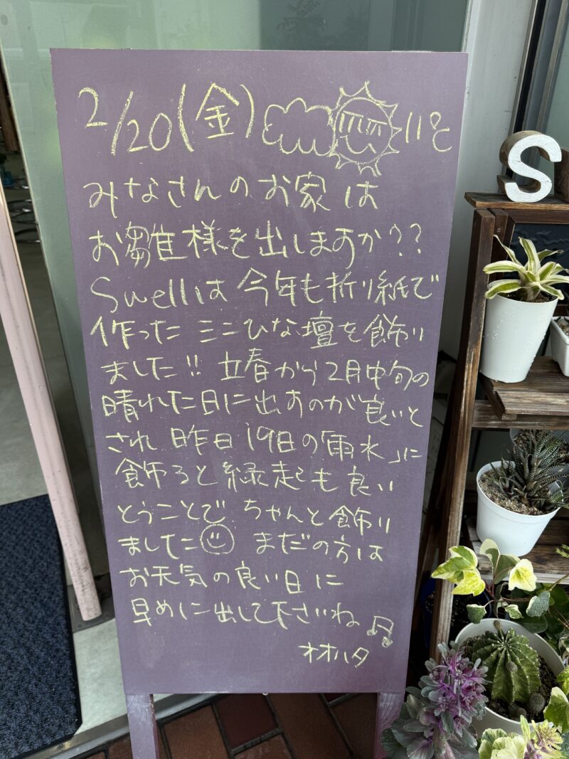 Swellは今年も折り紙で使ったミニひな壇を飾りました‼︎