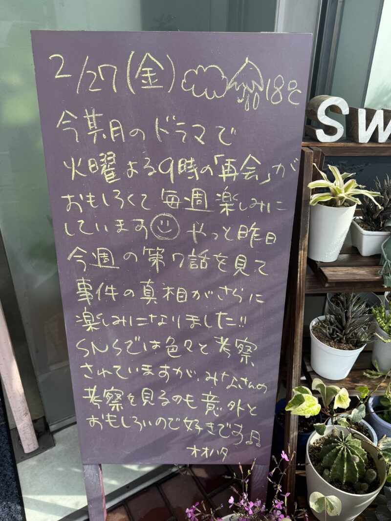 今期のドラマで、火曜よる9時の「再会」が、おもしろくて毎週楽しみにしています😊