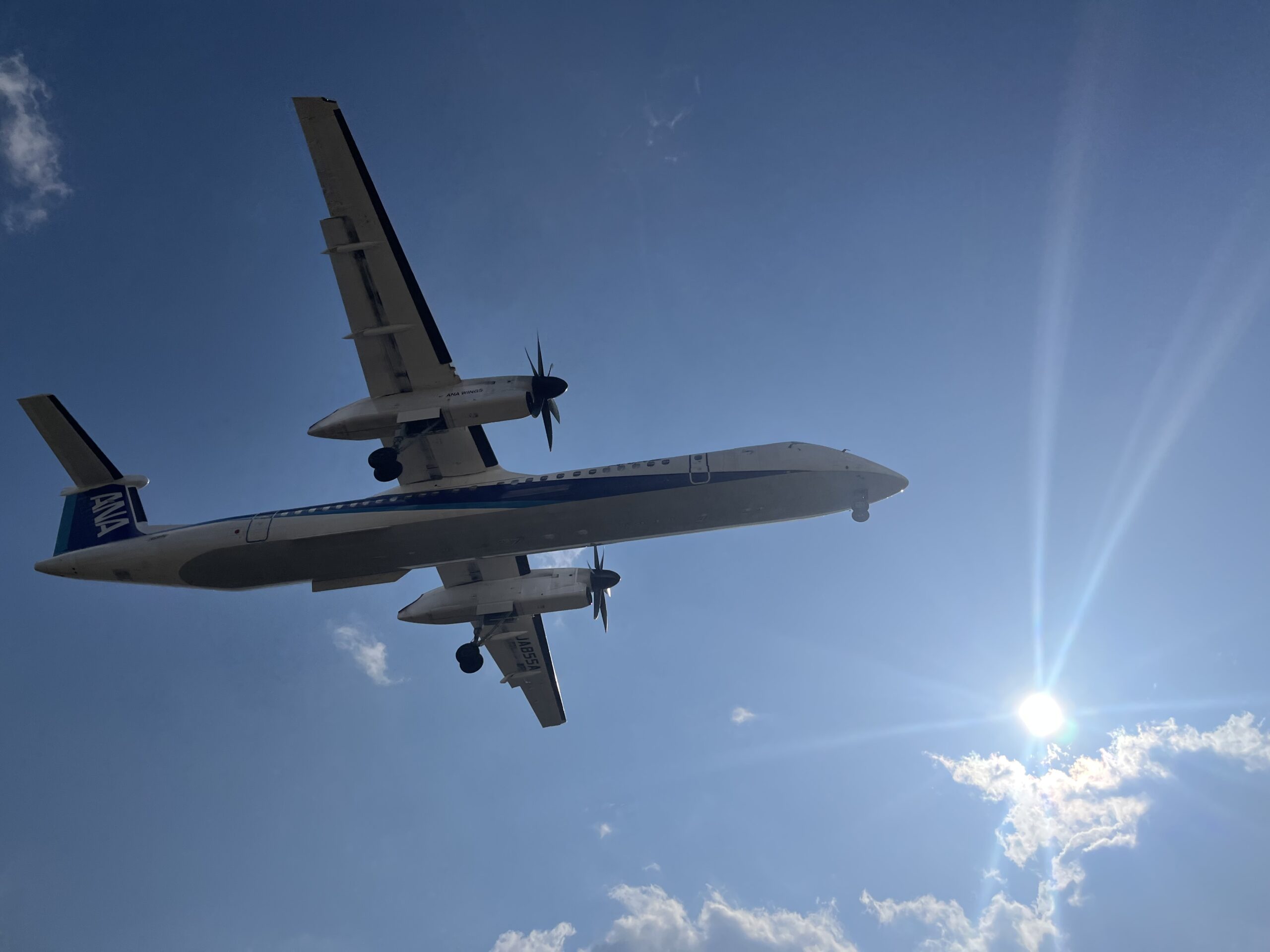 着陸寸前の飛行機を真下から