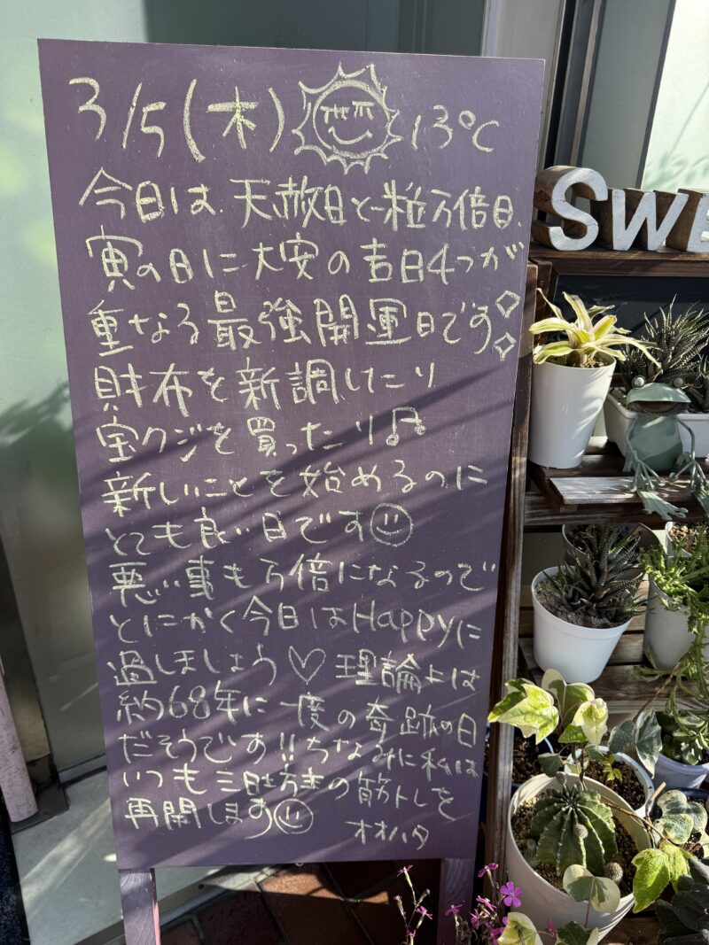 今日は、天敵日と一粒万倍日、寅の日に大安の吉日4つが重なる最強開運日です✨