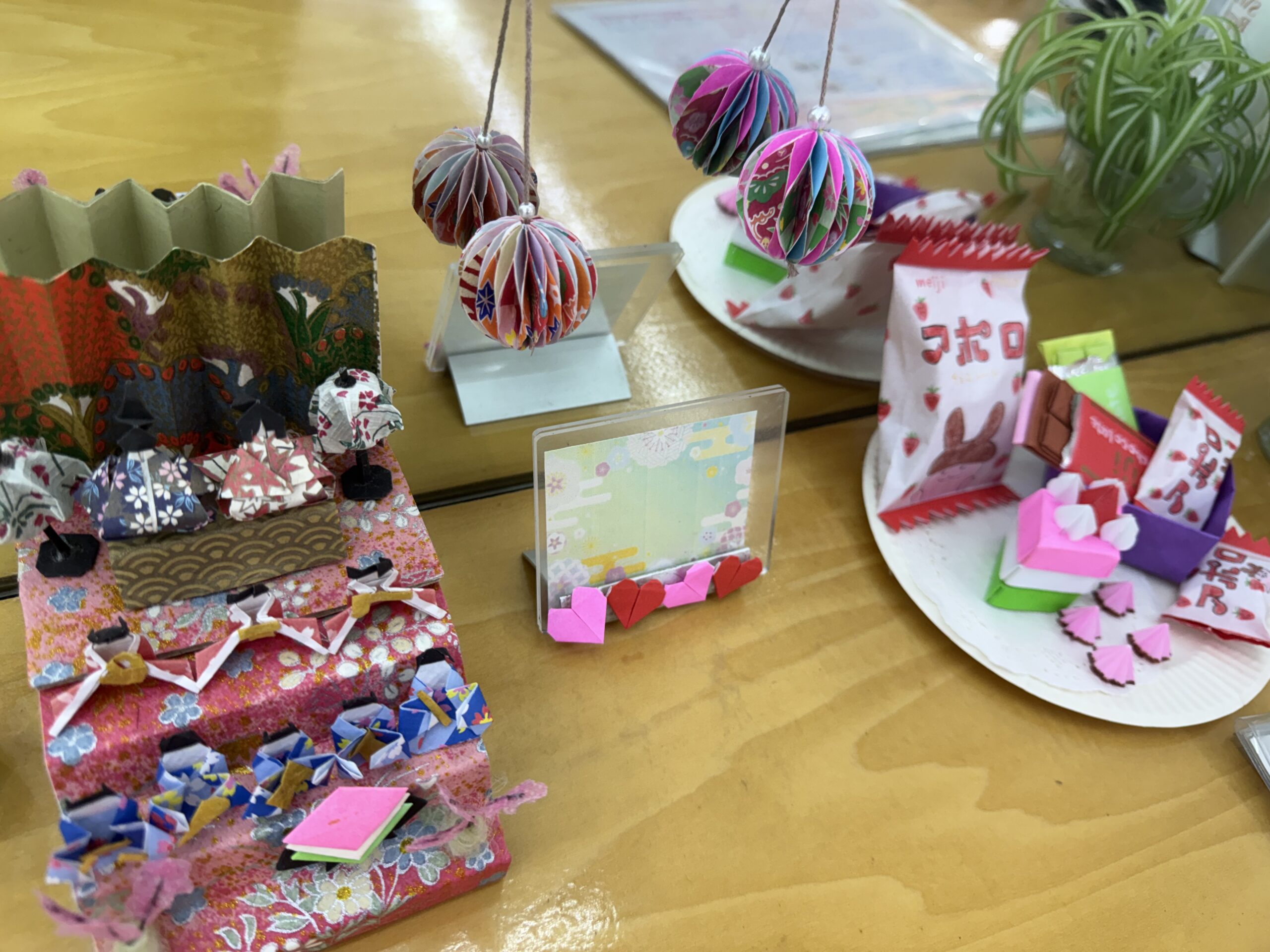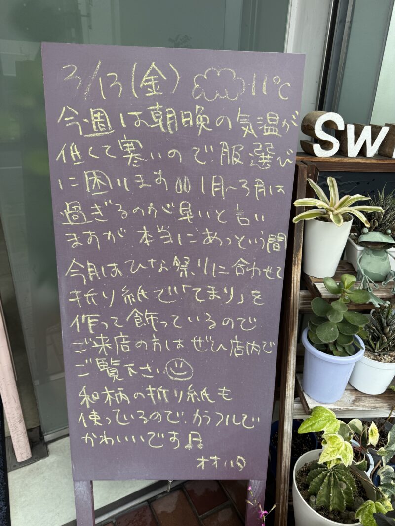 今月はひな祭りに合わせて、折り紙で「手毬」と作って飾っているので、ご来店の方はぜひ店内でご覧ください😊