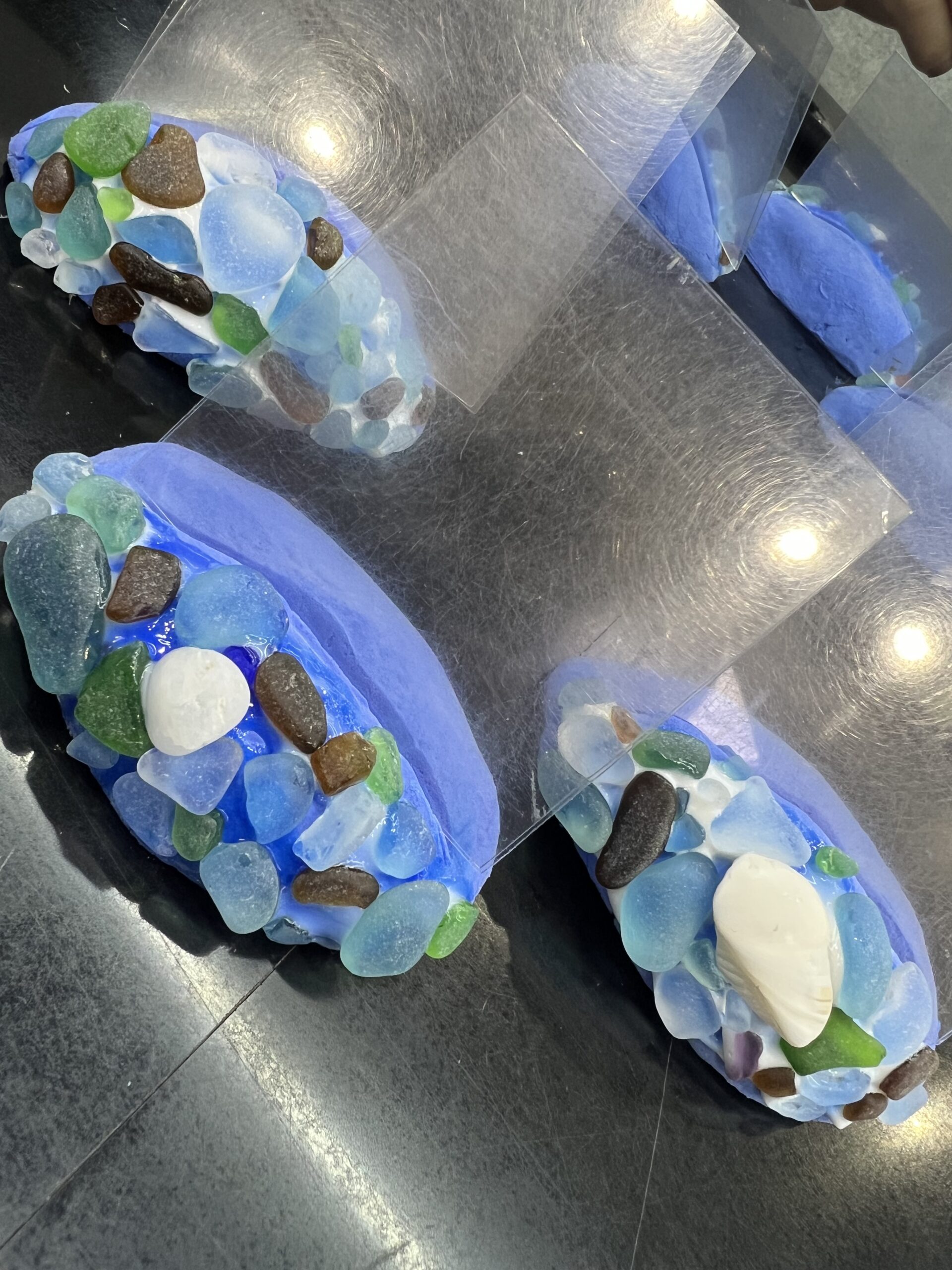 以前海にキャンプに行った時にシーグラスをとってきたので、ネームプレート台を作りました!