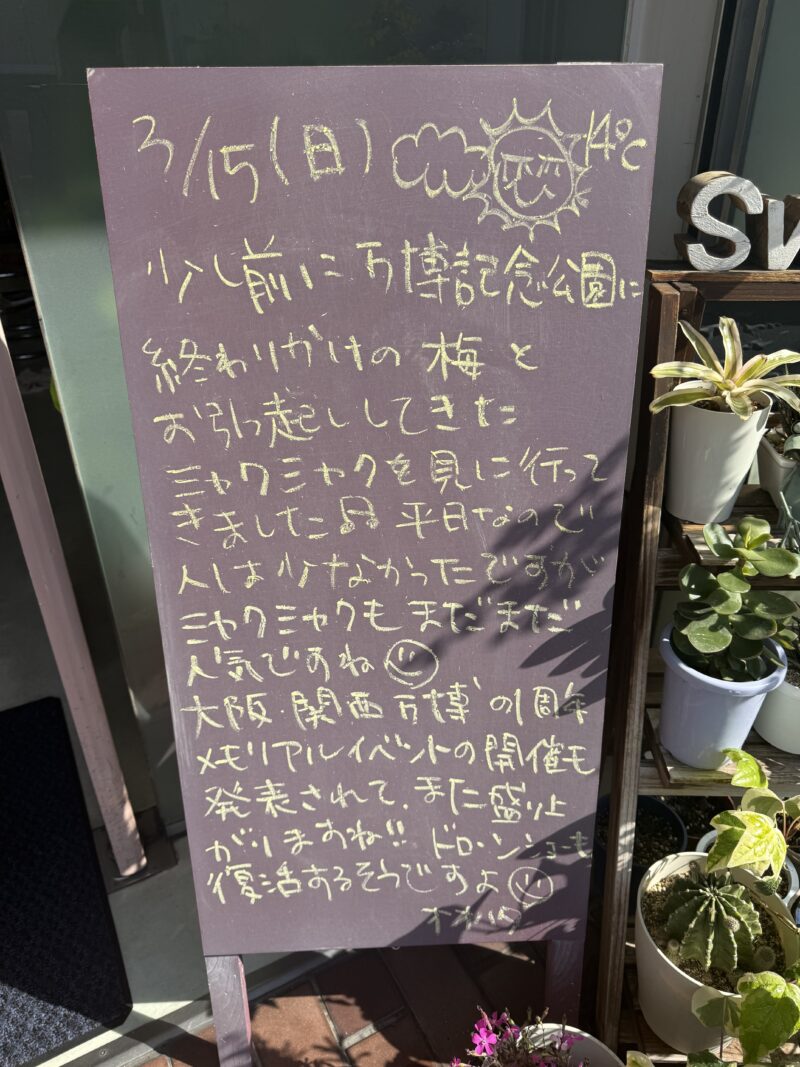 少し前に万博記念公園に終わりかけの梅とお引っ起ししてきたミャクミャクを見に行ってきまし♪