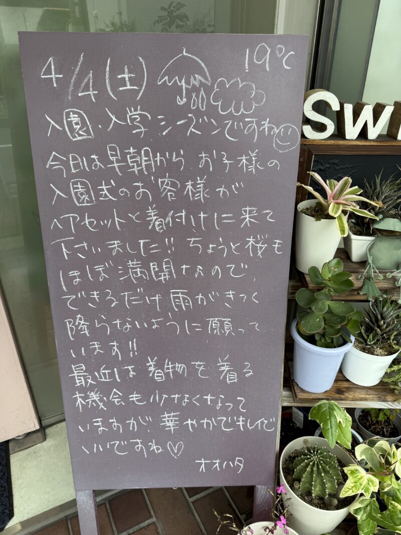 今日は早朝からお子様の入園式のお客様がヘアセットと着付けに来て下さいました!!